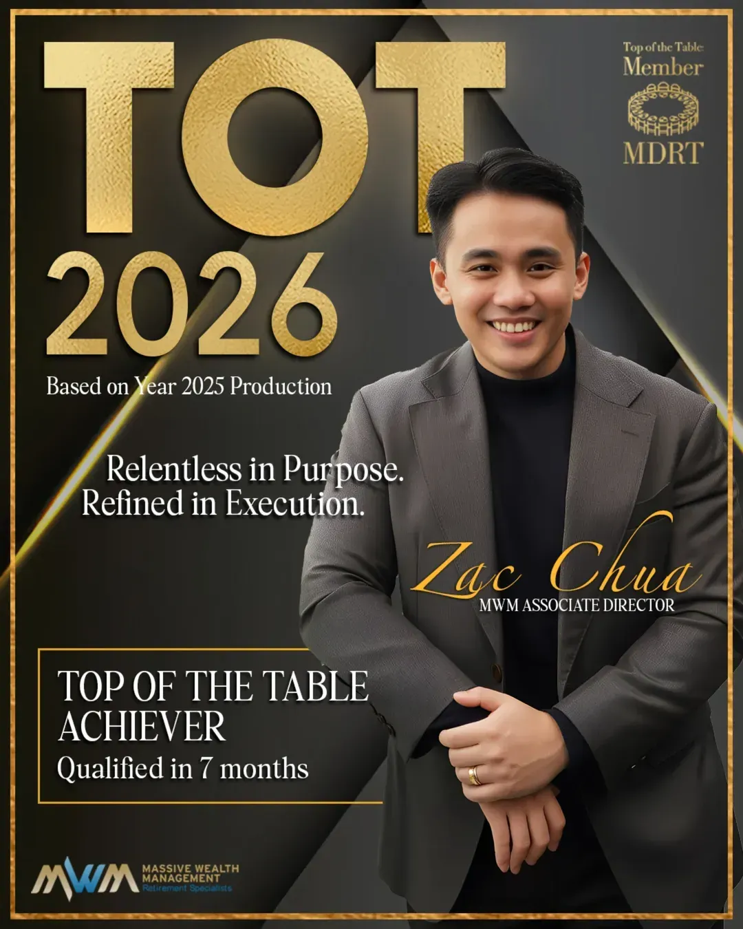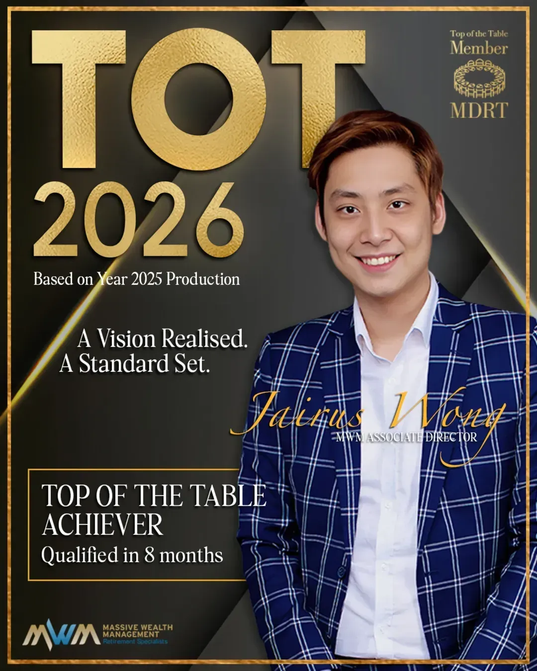 Qualified MDRT within his first 3 months as a new advisor